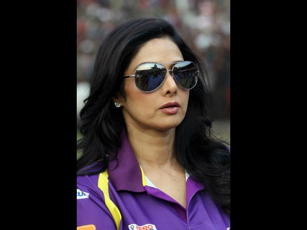 గాగుల్స్ ధరించిన శ్రీదేవి మ్యాచ్ తిలకిస్తూ ఇలా కనిపించింది.