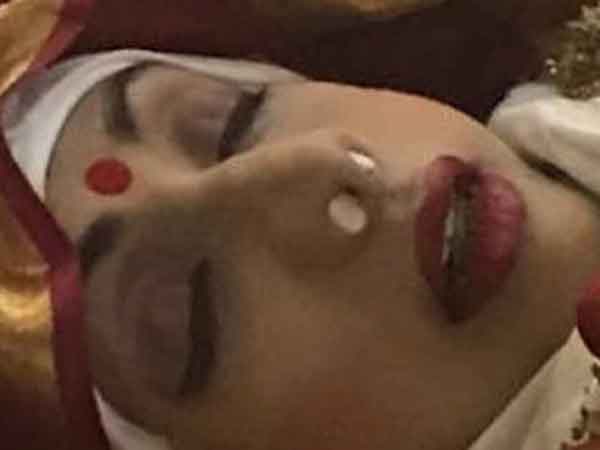 ముఖంపై చక్కగా పెద్ద సైజు కుంకుమ బొట్టును పెట్టారు. పెదాలకు ఎర్రటి లిప్స్టిక్ పూశారు. మెడలో మహాలక్ష్మిలా బంగారు ఆభరణాన్ని ధరింపజేశారు. అలా తన అభిరుచులకు ఏమాత్రం తగ్గకుండా చివరి ప్రయాణాన్ని ముగించింది.