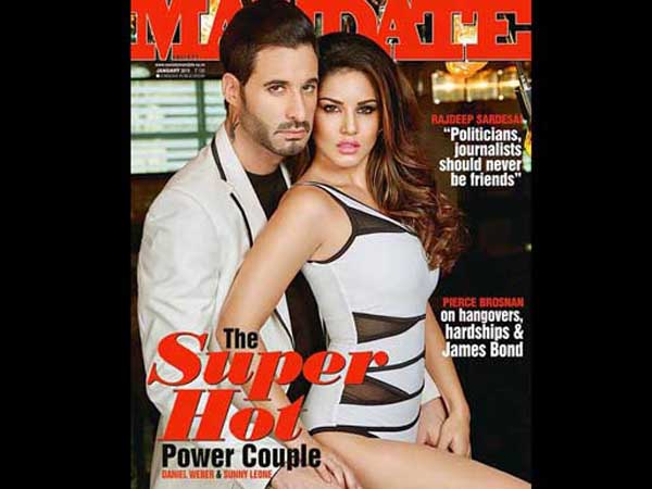 ముంబై: సన్నీ లియోన్ ఇపుడు బాలీవుడ్లో మోస్ట్ హాట్ అండ్ సెక్సీ బ్యూటీ. ఆమెతో తమ సినిమాల్లో అందాలు ఆరబోయించడానికి ఫిల్మ్ మేకర్స్ మాత్రమే కాదు...పలు పాపులర్ మేగజైన్స్ కూడా తమ కవర్ పేజీలపై ఆమె హాట్ ఫోజుల కోసం పోటీ పడుతున్నాయి. తాజాగా ఆమె మ్యాన్ డేట్ కవర్ పేజీపై తన భర్త డేనియల్ వెబర్ తో కలిసి దర్శనమిచ్చింది.