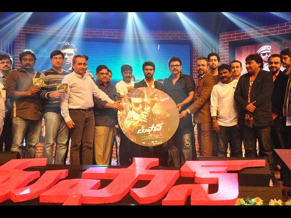 రామ్చరణ్, ప్రియాంకచోప్రా జంటగా తెరకెక్కిన 'తుఫాన్' చిత్రం ఆడియో విడుదల వేడుక హైదరాబాద్లో మంగళవారం ఘనంగా జరిగింది. ఈ వేడుకకు దర్శకుడు అపూర్వ లకియా, విక్టరీ వెంకటేష్తో పాటు శ్రీహరి, దిల్రాజు, వి.వి.వినాయక్, తనికెళ్ల భరణి తదితరులు హజరయ్యారు.