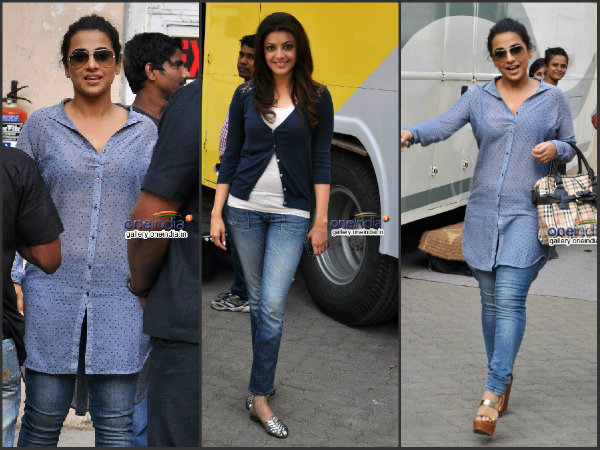 ఇటీవల ముంబైలోని బాంధ్రా ప్రాంతంలో మహబూబ్ స్టూడియోలో ఓ కార్యక్రమంలో పాల్గొనడానికి వచ్చిన విద్యా బాలన్....లోదుస్తులు కనిపించేలా ఉల్లిపొరలాంటి పలుచటి షర్టు వేసుకొచ్చి అందరూ నోరెళ్ల బెట్టేలా చేసింది. ఈ కార్యక్రమానికి హీరోయిన్ కాజల్ కూడా హాజరైంది. ఈవిడలా ఎక్స్ ట్రాలు మాత్రం చేయలేదు. అందుకు సంబంధించిన ఫోటోలు స్లైడ్ షోలో....