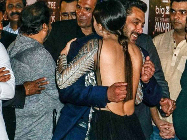 ఆమెను ఆలింగనం చేసుకున్నప్పటికీ... ఆ సమయంలో తన పిడికిళ్లను బంధించాడు. సల్మాన్ ఎందుకు ఇలా బిత్తర పోయాడంటే. సనాఖాన్ ఈ ఈవెంట్ కోసం డిజైనర్ నికితా టండన్ రూపొందించిన బ్లాక్ అండ్ వైట్ సెమీ శారీలో బ్యాక్లెస్ డ్రెస్ ధరించింది. ఈ కారణంగానే సల్మాన్.. ఆమెను ఆలింగనం చేసుకునే సమయంలో ఎంతో జాగ్రత్తగా వ్యవహరిస్తూ, తన పిడికిళ్లను గట్టిగా బిగించాడు.