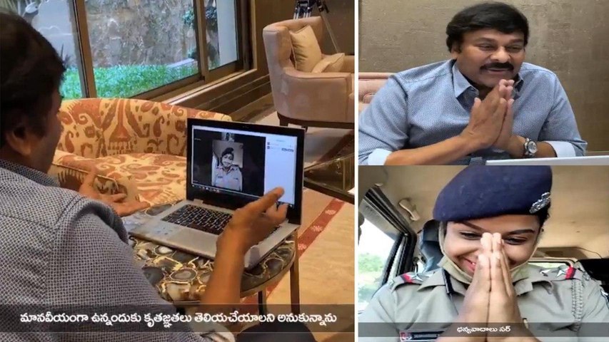చిరు ప్రశంసలకు పొంగిపోయిన సదరు పోలీసాఫీసర్ మాట్లాడుతూ.. ‘మీరు నాతో మాట్లాడాలని అనుకుంటున్నట్టు తనపై అధికారి చెప్పినప్పుడు ఎంతో సంతోషించాను. ఎందుకుంటే మీరో మెగాస్టార్..అంతకంటే ఎక్కువగా సామాజిక సేవలు చేశారు. నేను మీ సెమినార్స్ ఎన్నో చూశాను. టూరిజం మినిస్టర్గా మీరెంతో చేశారు. మీరు నన్ను అభినందిస్తున్నందుకు చాలా థ్యాంక్స్' అని ఎమోషనల్ అయింది.
