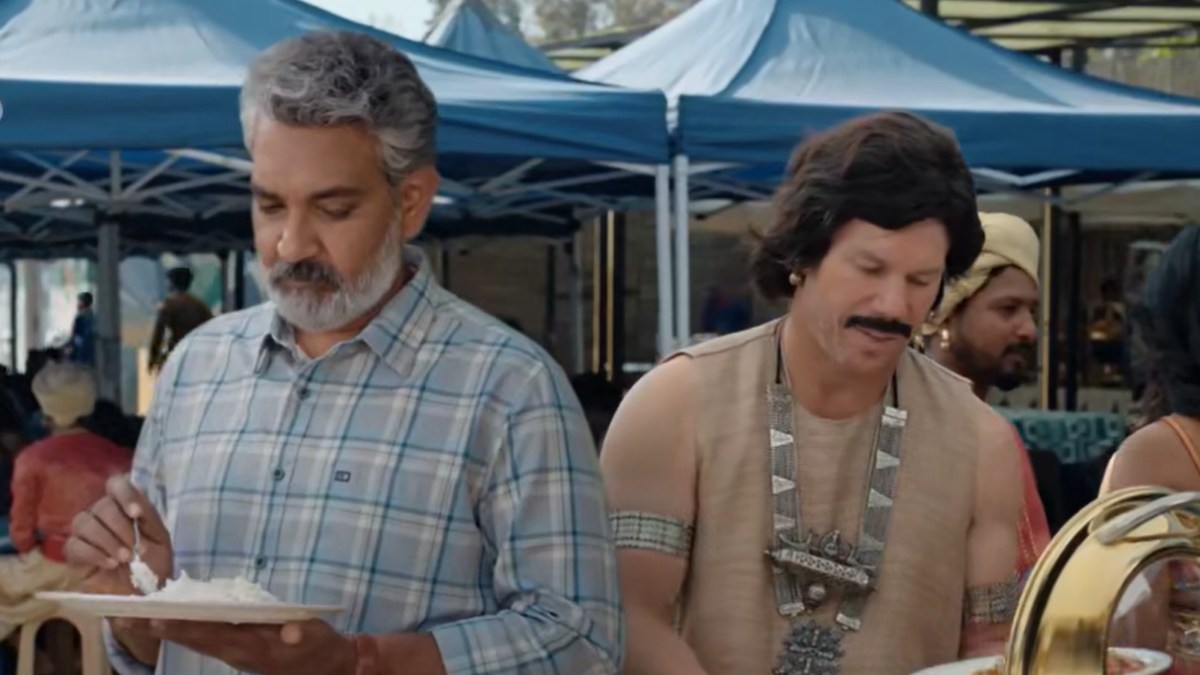 జక్కన్న ఇలా అడగడంతో క్రెడ్ యాప్ ఉందా? ఉంటే క్యాష్ బ్యాక్ వస్తుంది అని వార్నర్ రిప్లై ఇవ్వడం.. లేకపోతే ఏం చేయాలని రాజమౌళి అనడంతో యాడ్ స్టార్ట్ అవుతుంది. టికెట్ విషయంలో డిస్కౌంట్ కావాలి అంటే తనకు ఒక ఫేవర్ చేయాలని కోరుతారు. ఆ సమయంలో రాజమౌళి డ్రీమ్స్ లోకి వెళ్తారు. ఇందులో భాగంగా డేవిడ్ వార్నర్ తో రాజమౌళి సినిమా చేస్తున్నట్టు ఏవేవో ఊహించుకుంటారు.