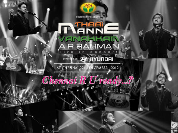 జయా టీవీ ఆధ్వర్యంలో జరగనున్న ఈ మ్యూజికల్ షోను 12 ఏళ్ల తరువాత మళ్లీ ఏఆర్ రెహ్మాన్ చెన్నైలో ప్రత్యేకంగా తమిళ పాటలతో నిర్వహిస్తూ ఈ కార్యక్రమాన్ని ఏర్పాటు చేయనుండడం విశేషం. ఏఆర్ రెహ్మాన్ తొలి చిత్రం రోజా చిత్రం నుంచి తాజా చిత్రం కడల్ లోని పాటల వరకు ఈ మ్యూజికల్ షోలో ప్రేక్షకులను అలరించనున్నట్లు నిర్వాహకులు తెలిపారు. సుమారు 30 పాటలు ఈ షోలో ఆలపించనున్నట్లు ఎ.ఆర్.రెహ్మాన్ వెల్లడించారు. వీటిని ప్రఖ్యాత గాయకులు ఎస్.పి.బాలసుబ్రమణ్యం, హరిహరన్, కార్తీక్, చిత్ర, బెన్ని, పాల్గొననున్నారని తెలిపారు. ఇలాంటి బ్రహ్మాండమైన మ్యూజికల్ షోను నిర్వహించాలన్నది తన చిరకాల వాంఛ అని రెహ్మాన్ పేర్కొన్నారు. ఈ నెల 29న సాయంత్రం 6 గంటలకు ప్రారంభమయ్యే కార్యక్రమానికి టిక్కెట్టు ధర వచ్చే ఆదాయంలో పది శాతాన్ని జయ టీవీ పలు సామాజిక సేవా కార్యక్రమాలకు వినియోగించే విధంగా రాష్ట్ర ప్రభుత్వ నిధికి అందించనున్నట్లు నిర్వాహకులు వెల్లడించారు.