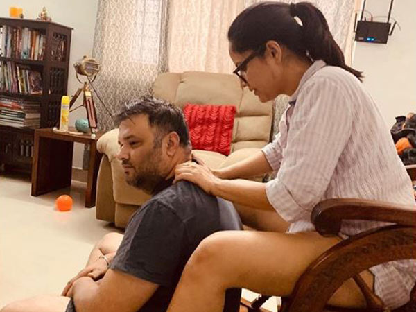 భర్త శశాంక్ భరద్వాజ్ అంటే అనసూయకు చెప్పలేనంత ఇష్టం. తన ఇష్టాన్ని పలు రకాలుగా వెల్లడిస్తుంటుంది. తాజాగా భర్తకు మసాజ్ చేస్తూ ఉన్న ఫొటోను తన ఇన్స్టాగ్రామ్లో పోస్ట్ చేసింది. భర్త కింద కూర్చొని ఉండగా.. ఆయన మెడకు మసాజ్ చేస్తూ కనిపించింది. ఒంటిపై కేవలం షర్ట్ మాత్రమే ధరించిన అనసూయ.. కింది భాగంలో ఎలాంటి దుస్తులు లేకుండా తొడలు కనిపించేలా ఫొటో పెట్టింది.