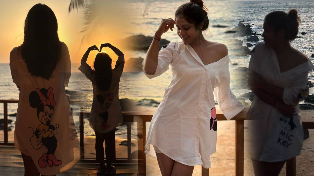 షర్ట్ బటన్స్ తీసేసి తెలుగు పిల్ల శ్వేతా నాయుడు హాట్ షో: బీచ్లో కిందకు జరిపి పోజులు!