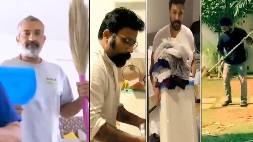 దర్శకధీరుడు రాజమౌళి ఆ సవాల్ను స్వీకరించి ఇంటి పనులను చేశాడు. నేలను, కిటికీలను శుభ్రం చేస్తూ ఉన్న వీడియోను షేర్ చేస్తూ రామ్ చరణ్, ఎన్టీఆర్, శోభు యార్లగడండ, సుకుమార్, కీరవాణిలకు ఛాలెంజ్ విసిరాడు. ఈ మేరకు ఆ సవాళ్ను ఎన్టీఆర్ స్వీకరించాడు.