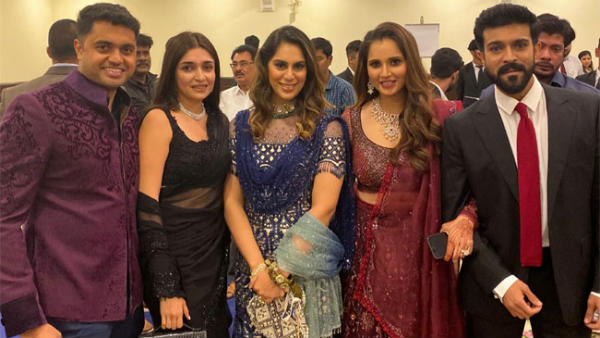 ఈ పెళ్లి విందులో చరణ్, ఉపాసన సందడి చేశారు. అజహరుద్దీన్ తోనూ చరణ్ దంపతులు ఎంతో హుషారుగా ముచ్చటిస్తూ కనిపించారు. కాగా.. సానియా మీర్జాకు, ఉపాసనకు మధ్య మంచి సాన్నిహిత్యం ఉందన్న విషయం విదితమే. వీరిద్దరూ ఎప్పటి నుంచో స్నేహితులు. ఇక ఈ ఈవెంట్లో వీరి ఫోటోలు ఎంతగానో వైరల్ అవుతున్నాయి. ముఖ్యంగా రామ్ చరణ్ చేతిలో చేయి వేసిన సానియా మీర్జా ఫోటో హల్ చల్ చేస్తుంది. పక్కన ఉపాసన ఉండగానే సానియా అంత చనువుగా ఉందంటూ కామెంట్లు చేస్తున్నారు నెటిజన్లు.